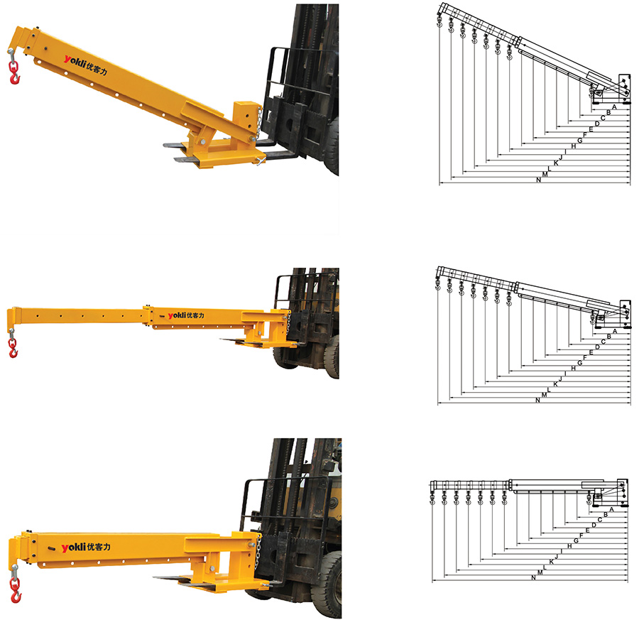 ● 可調伸縮超長吊臂,適用于叉車不易進入的區域進行操作,特別適用于用叉車吊裝集裝箱。