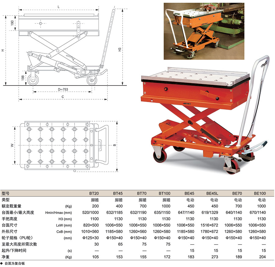 ● BE型電動平臺車采用免維護啟動電池,節省維護時間和成本,內置式充電器,帶電量顯示表,低電壓報警燈。