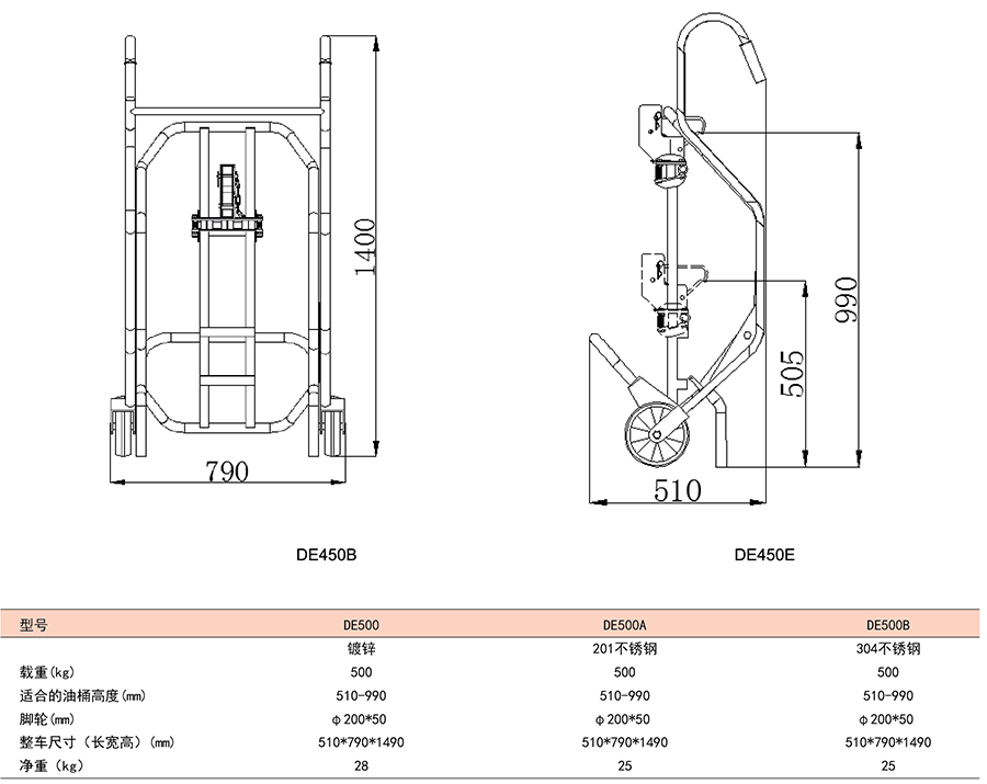 ● 鷹嘴高度可調, 適用于各種不同規格的油桶的搬運。