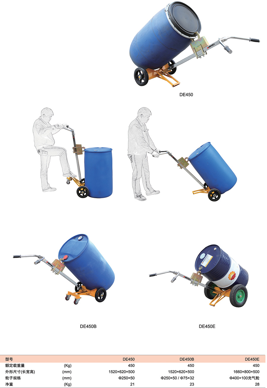 ● DE450E大輪設計, 適用于不平整的地面搬運。