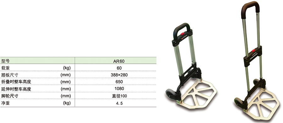 ● 此車可裝載與其他手推車一樣的重量,但是折疊后比其他類型的車都薄。